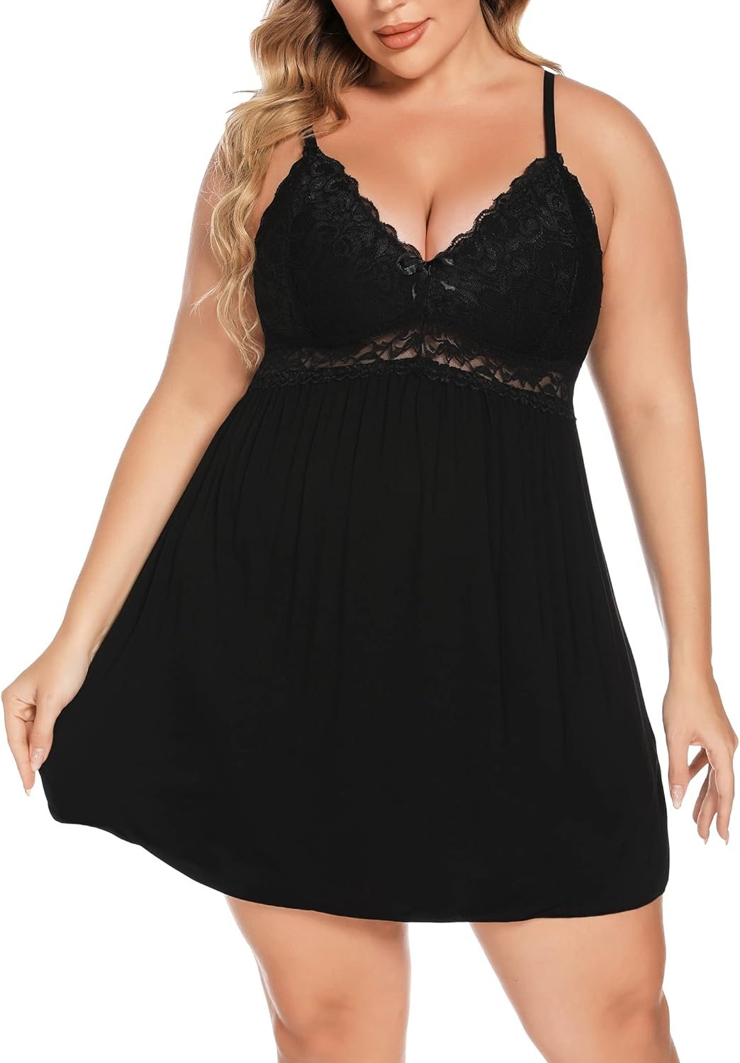 - ❤Plus Size Lingerie for Women: sexy sleepwear for women with lace cup decor little bow is friendly for big girls/ladies. This sexy lingerie for women plus size show your body and spike your confidence with more fashion elements. Chemises for women plus size can also make you sexy, elegant and charming. Wearing this sexy chemises will make your sweetheart get lost in your dreamy beauty at night.