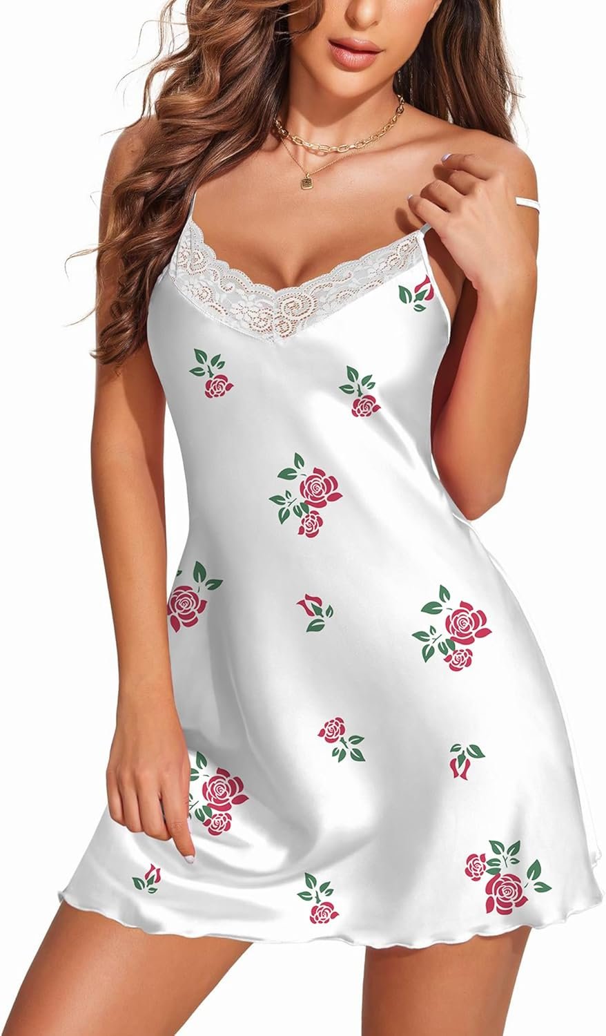 - SEXY LACE LINGERIE – Womens chemise nightgown features adjustable spaghetti straps, v-neck with floral lace, show sexy body curve.With wavy hemline and low-cut neckline, make you more sexy and charming.