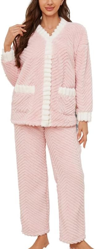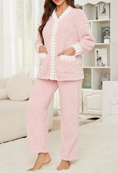 • 【Premium fleece fabric】Our women’s pajama set uses high-quality fabric. The fleece is exceptionally fluffy, incredibly soft and comfortable, with excellent warmth, making it perfect for wearing in the cold winter months.