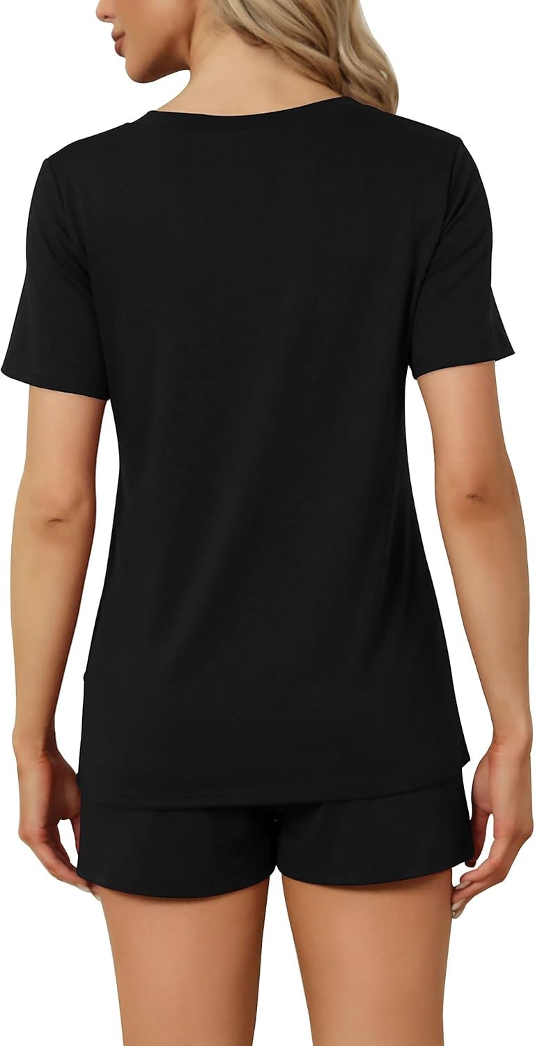 - FEATURE — The package including 1 x short sleeve t-shirt and 1 x short. The top has classic v neckline and a pocket. The short has elastic drawstring and side pockets. The cute top is perfectly complemented by shorts. Casual and sexy in daily life.